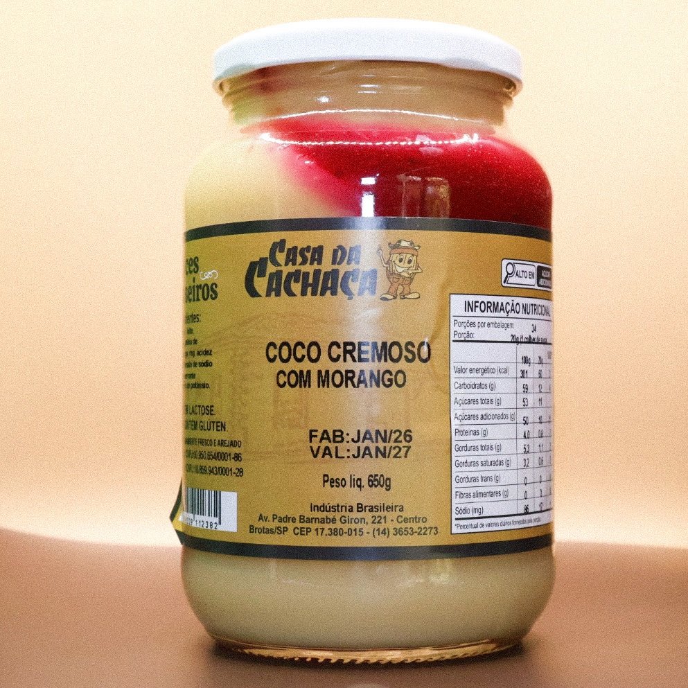 Cocada cremosa com morango com jeitinho do interior com ingredientes selecionados e qualidade que você só encontra aqui na Casa da Cachaça.